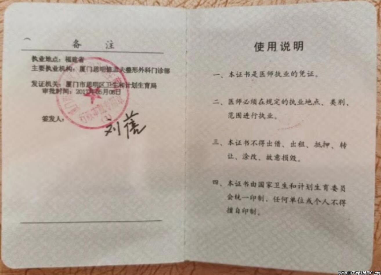 主要執(zhí)業(yè)機(jī)構(gòu):廈門(mén)思明修志夫整形外科門(mén)診部