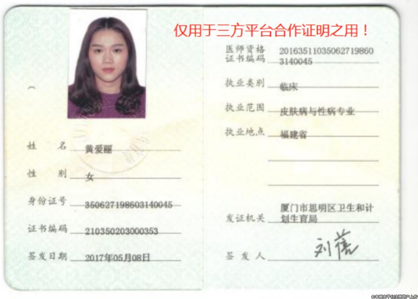 執(zhí)業(yè)范圍:皮膚病與性病專(zhuān)業(yè)