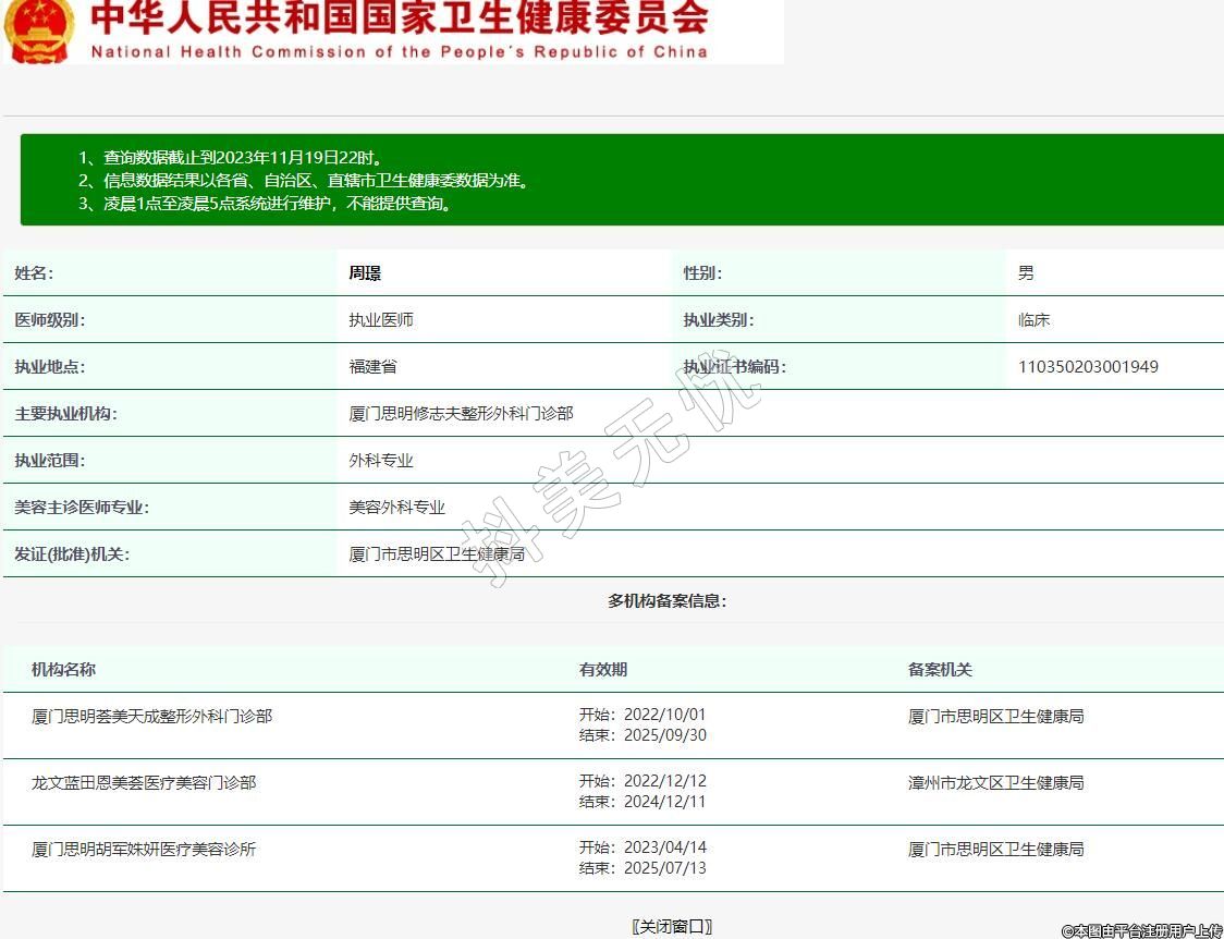 主要執(zhí)業(yè)機(jī)構(gòu):廈門(mén)思明修志夫整形外科門(mén)診部