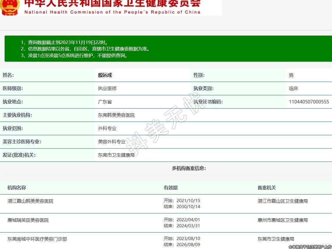 主要執(zhí)業(yè)機(jī)構(gòu):東莞韓美美容醫(yī)院