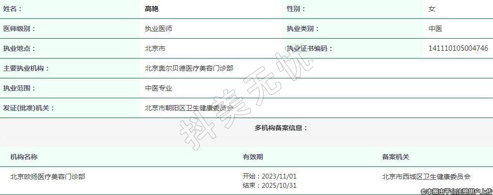 北京歐揚醫(yī)療美容執(zhí)業(yè)醫(yī)生