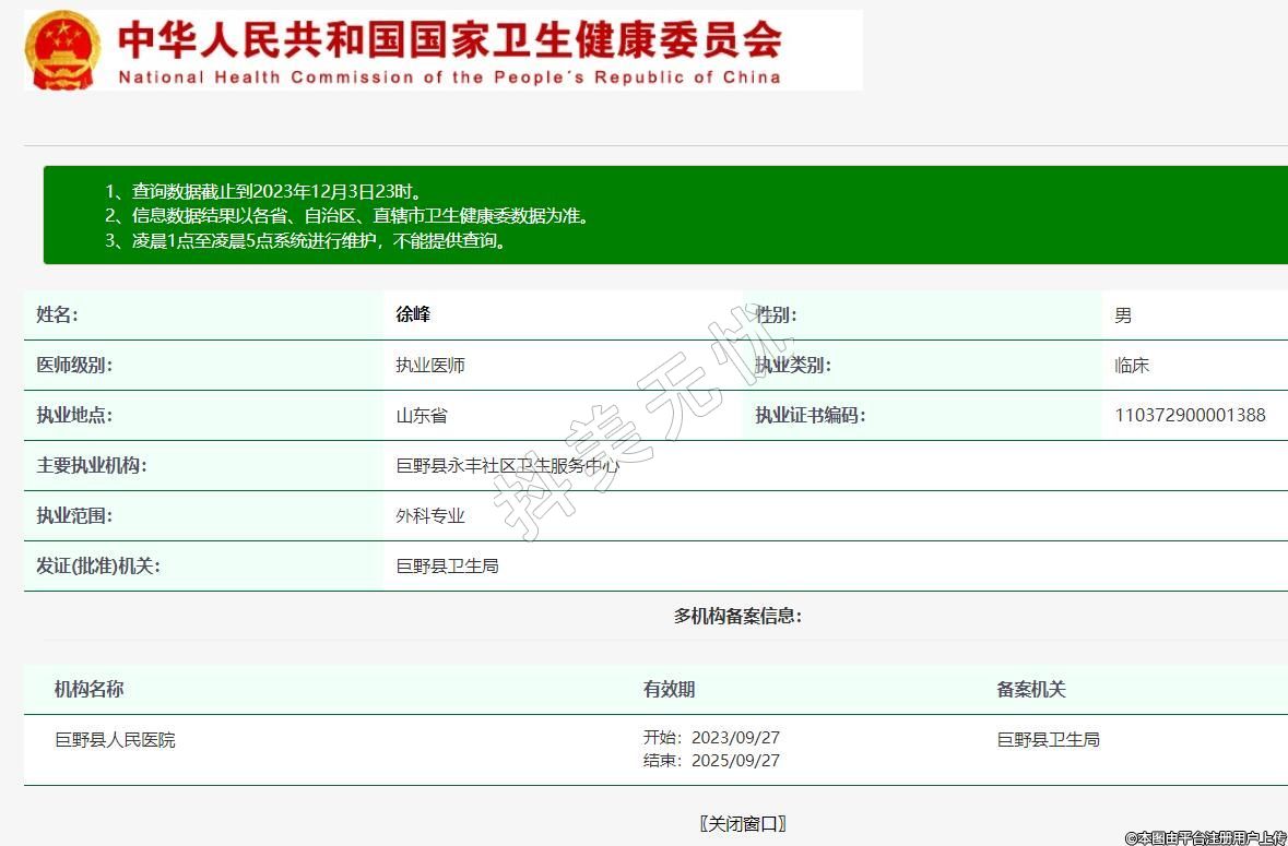發(fā)證(批準)機關:巨野縣衛(wèi)生局