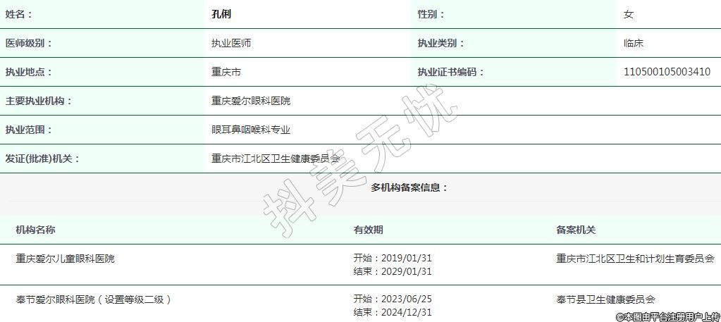 重慶愛爾眼科執(zhí)業(yè)醫(yī)師