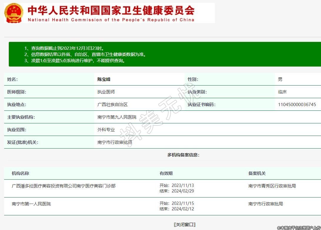 機(jī)構(gòu)名稱:廣西潘多拉醫(yī)療美容投資有限公司南寧醫(yī)療美容門診部