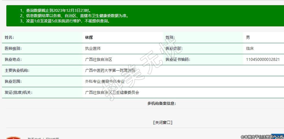 執(zhí)業(yè)范圍:外科專業(yè);美容外科專業(yè)