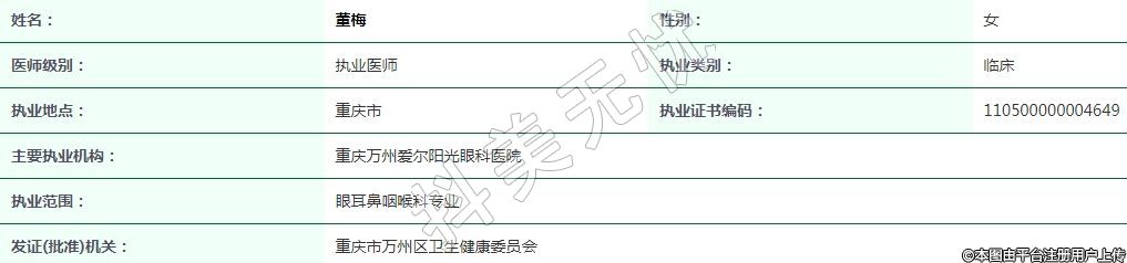重慶萬(wàn)州愛(ài)爾陽(yáng)光眼科執(zhí)業(yè)醫(yī)師