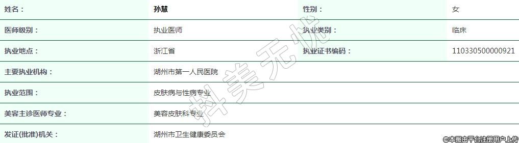 湖州市第一人民醫(yī)院皮膚醫(yī)療美容執(zhí)業(yè)醫(yī)師