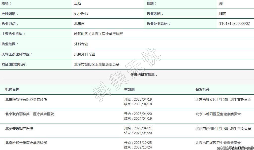 北京唯顏時代醫(yī)療美容執(zhí)業(yè)醫(yī)生