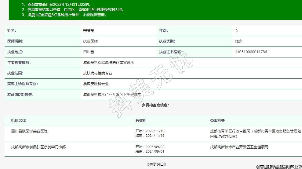 主要執(zhí)業(yè)機構(gòu):成都高新歡欣晶膚醫(yī)療美容診所