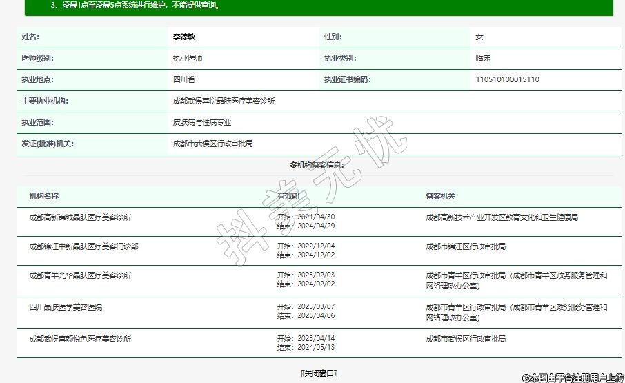 主要執(zhí)業(yè)機(jī)構(gòu):成都武侯喜悅晶膚醫(yī)療美容診所