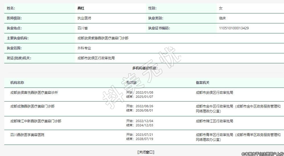 主要執(zhí)業(yè)機(jī)構(gòu):成都武侯紫藤晶膚醫(yī)療美容門(mén)診部