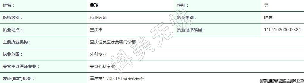 重慶恒美醫(yī)療美容執(zhí)業(yè)醫(yī)師