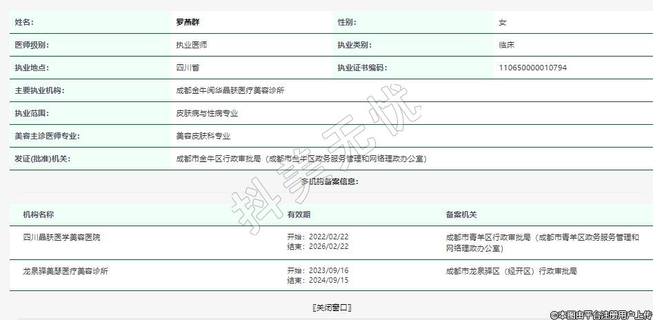 主要執(zhí)業(yè)機(jī)構(gòu):成都金牛閱華晶膚醫(yī)療美容診所
