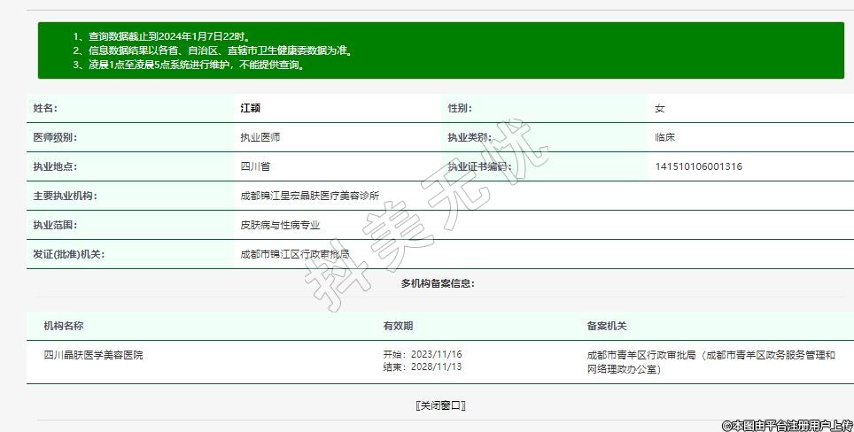 主要執(zhí)業(yè)機(jī)構(gòu):成都錦江星宏晶膚醫(yī)療美容診所