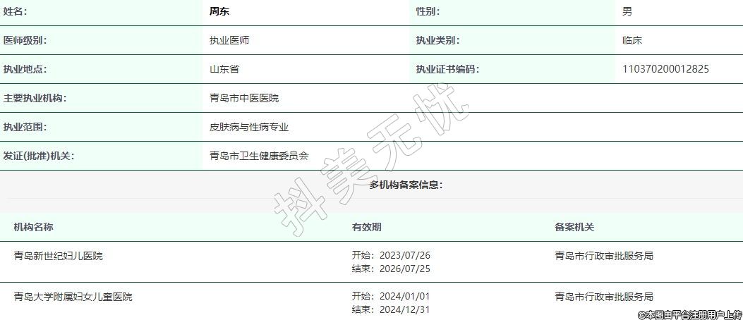 執(zhí)業(yè)范圍:皮膚病與性病專業(yè)