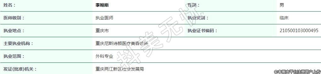 重慶尼斯詩(shī)顏醫(yī)療美容執(zhí)業(yè)醫(yī)師