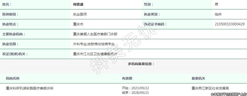 重慶科妍璣湖彩路醫(yī)療美容執(zhí)業(yè)醫(yī)師 -