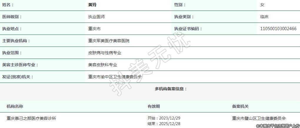 重慶慕己之顏醫(yī)療美容執(zhí)業(yè)醫(yī)師 -