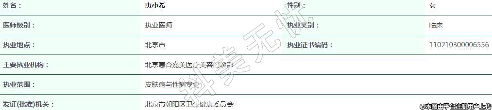 北京惠合嘉美醫(yī)療美容執(zhí)業(yè)醫(yī)生