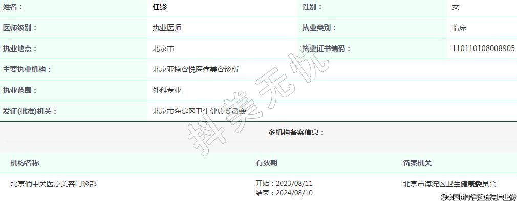 北京亞楠容悅醫(yī)療美容執(zhí)業(yè)醫(yī)生