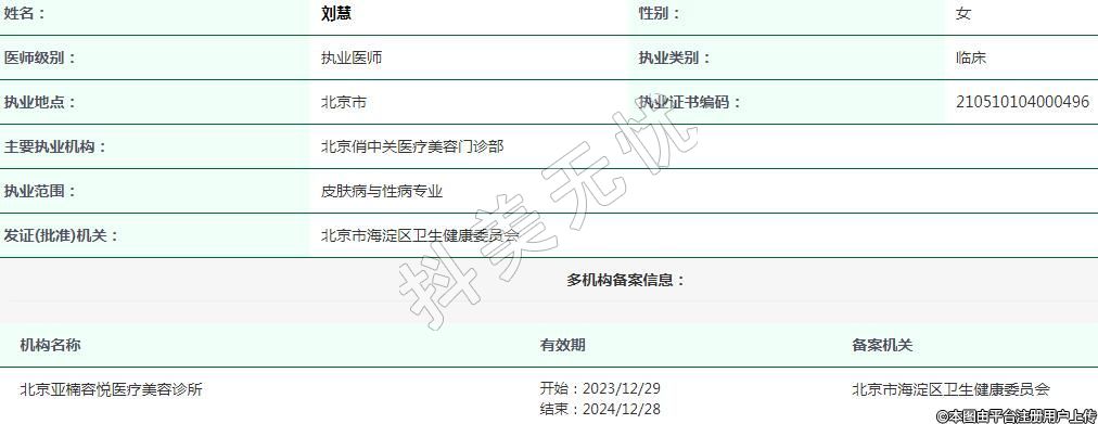 北京亞楠容悅醫(yī)療美容執(zhí)業(yè)醫(yī)生
