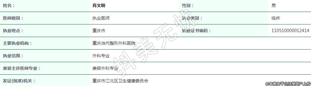 重慶當代整形外科執(zhí)業(yè)醫(yī)師