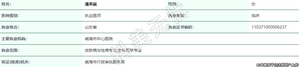 執(zhí)業(yè)范圍:皮膚病與性病專業(yè);全科醫(yī)學專業(yè)
