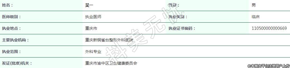 重慶新銅雀臺整形外科執(zhí)業(yè)醫(yī)師