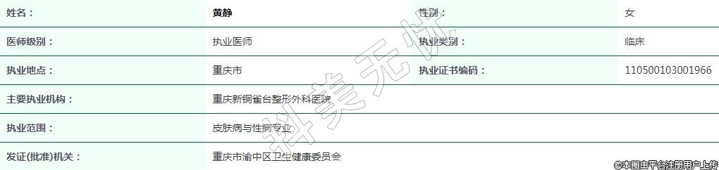重慶新銅雀臺整形外科執(zhí)業(yè)醫(yī)師