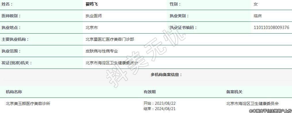 北京星醫(yī)匯醫(yī)療美容執(zhí)業(yè)醫(yī)生