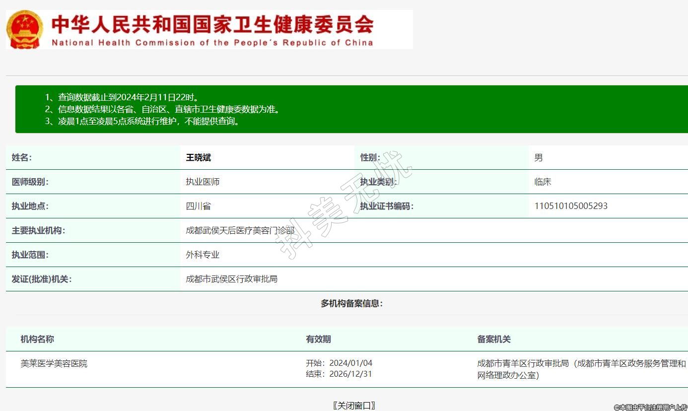主要執(zhí)業(yè)機(jī)構(gòu):成都武侯天后醫(yī)療美容門診部