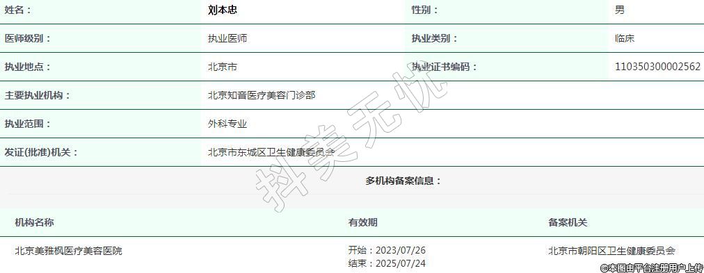 北京知音醫(yī)療美容執(zhí)業(yè)醫(yī)生