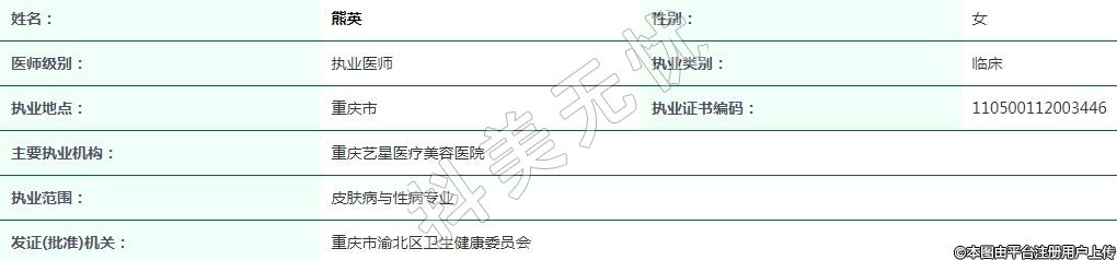 重慶藝星醫(yī)療美容執(zhí)業(yè)醫(yī)師