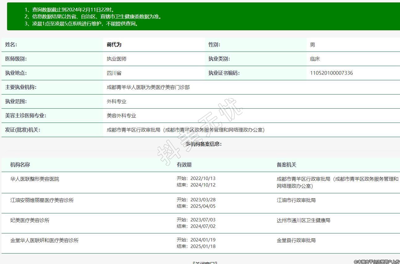 主要執(zhí)業(yè)機構(gòu):成都青羊華人醫(yī)聯(lián)為美醫(yī)療美容門診部