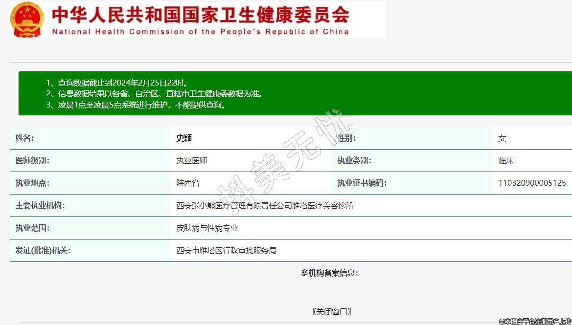 主要執(zhí)業(yè)機(jī)構(gòu):西安張小熊醫(yī)療管理有限責(zé)任公司雁塔醫(yī)療美容診所