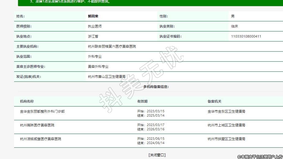 主要執(zhí)業(yè)機(jī)構(gòu):杭州聯(lián)合麗格第六醫(yī)療美容醫(yī)院