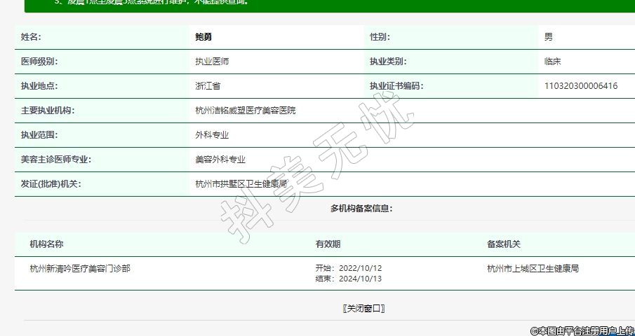 主要執(zhí)業(yè)機(jī)構(gòu):杭州潔銘威塑醫(yī)療美容醫(yī)院