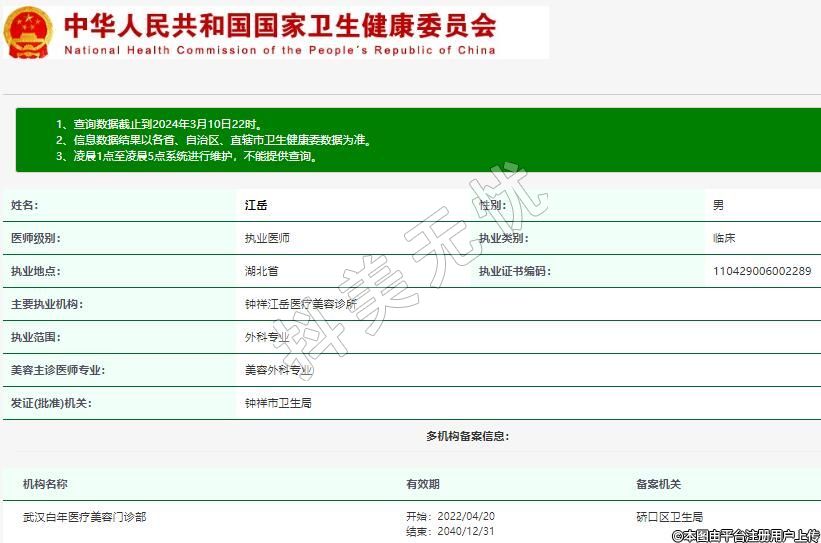 主要執(zhí)業(yè)機(jī)構(gòu):鐘祥江岳醫(yī)療美容診所