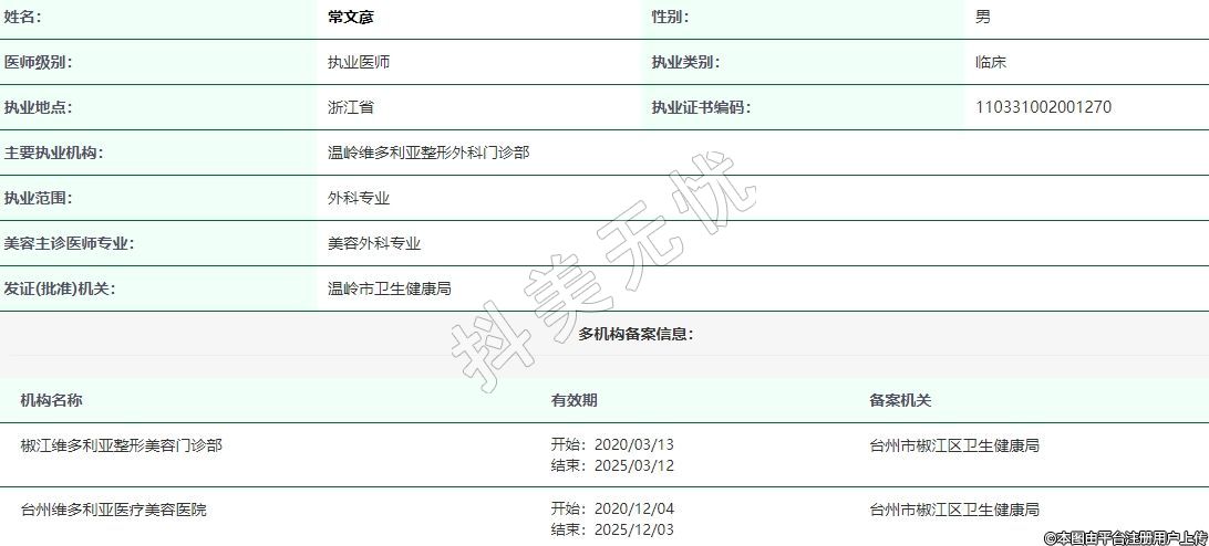 主要執(zhí)業(yè)機(jī)構(gòu):溫嶺維多利亞整形外科門診部