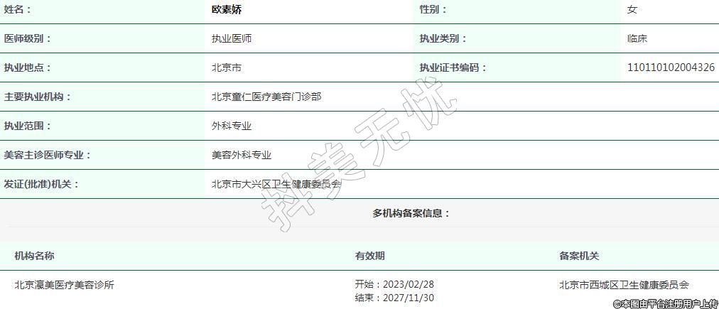 主要執(zhí)業(yè)機構(gòu):北京童仁醫(yī)療美容門診部
