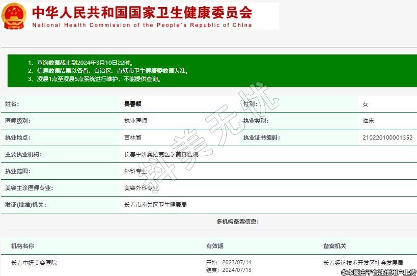 主要執(zhí)業(yè)機構(gòu):長春中妍奧拉克醫(yī)學美容醫(yī)院