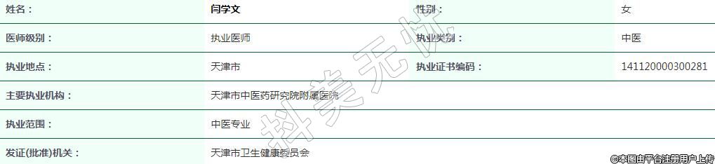 執(zhí)業(yè)地點:天津市