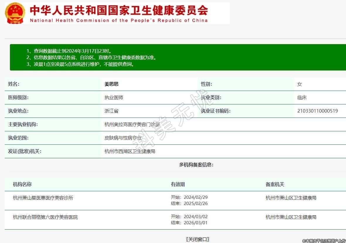 發(fā)證(批準(zhǔn))機關(guān):杭州市西湖區(qū)衛(wèi)生健康局