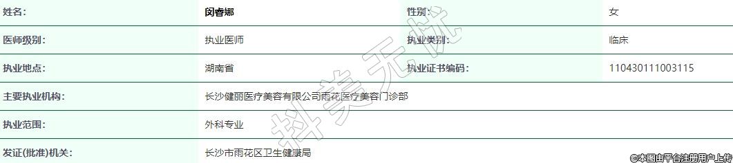 主要執(zhí)業(yè)機構:長沙健麗醫(yī)療美容有限公司雨花醫(yī)療美容門診部