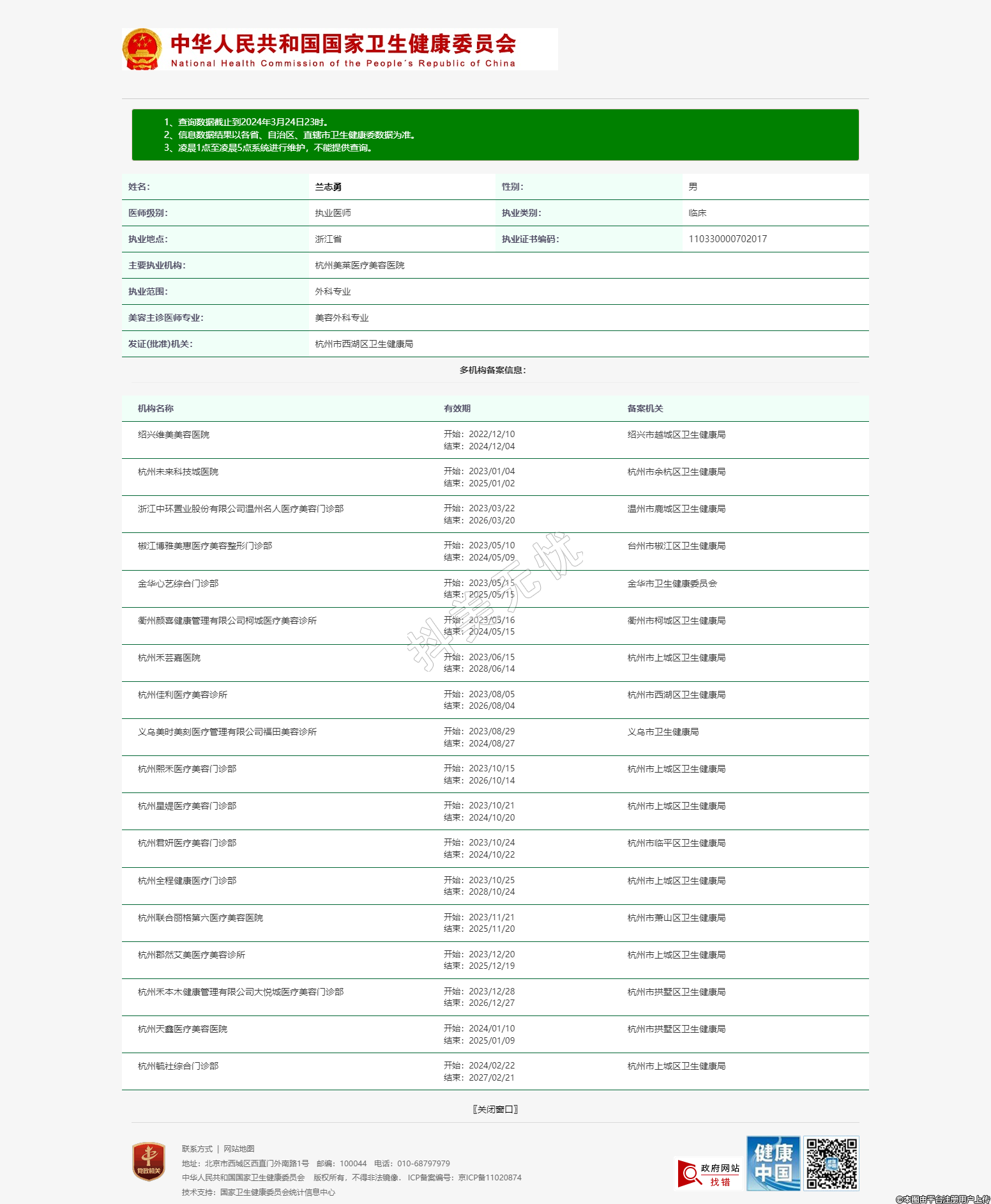 主要執(zhí)業(yè)機構(gòu):杭州美萊醫(yī)療美容醫(yī)院