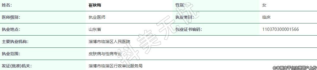 執(zhí)業(yè)范圍:皮膚病與性病專(zhuān)業(yè)