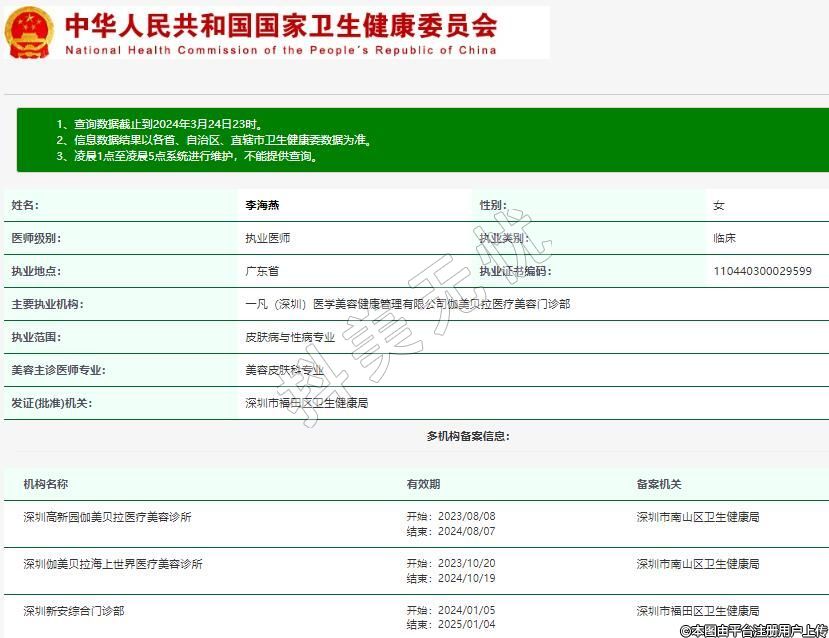 主要執(zhí)業(yè)機(jī)構(gòu):一凡(深圳)醫(yī)學(xué)美容健康管理有限公司伽美貝拉醫(yī)療美容門診部