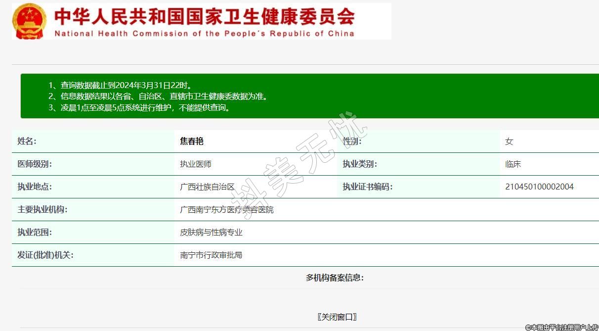 主要執(zhí)業(yè)機構:廣西南寧東方醫(yī)療美容醫(yī)院