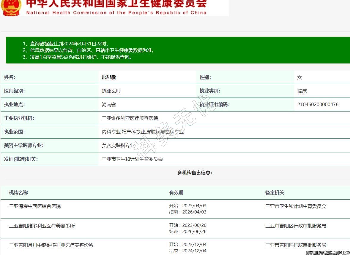 主要執(zhí)業(yè)機(jī)構(gòu):三亞維多利亞醫(yī)療美容醫(yī)院
