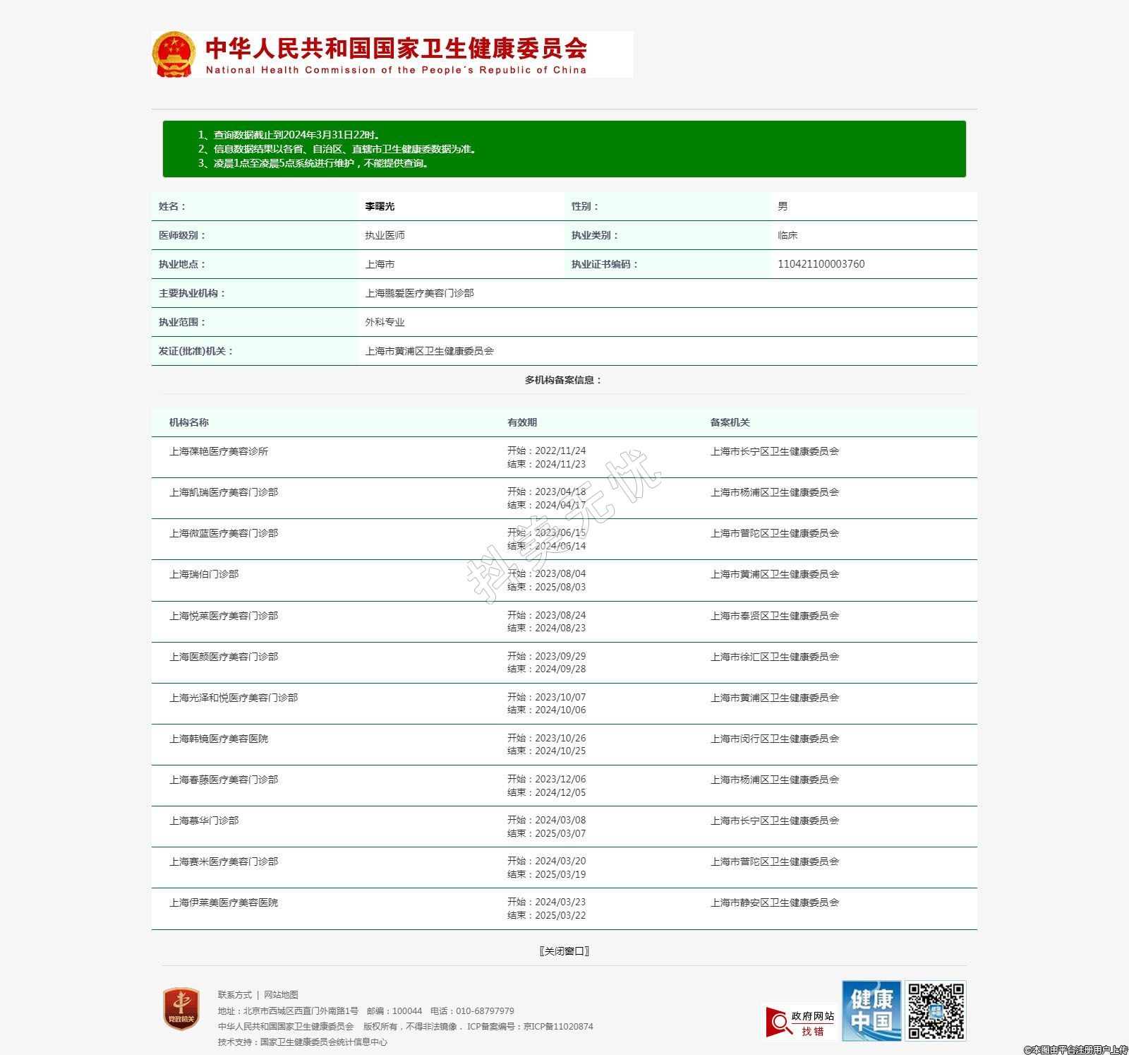發(fā)證(批準)機關:上海市黃浦區(qū)衛(wèi)生健康委員會